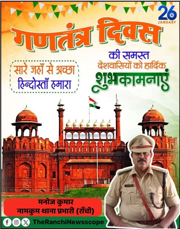 राँची: 77वें गणतंत्र दिवस (26 जनवरी) के शुभ अवसर पर समस्त देशवासियों को हार्दिक शुभकामनाएँ ।
